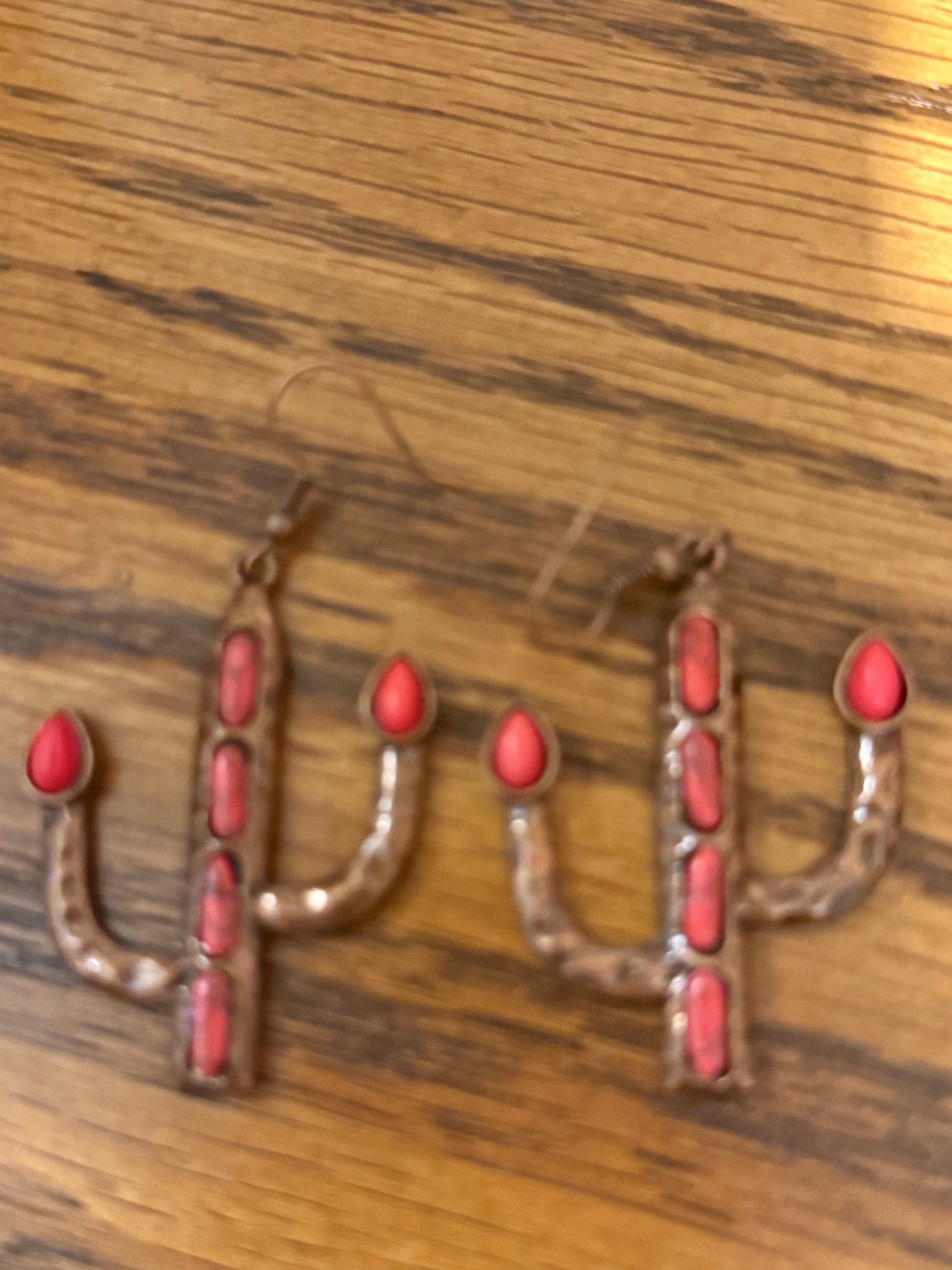 Red dangle earrings in the shape of a cactus to complement your western wardrobe!