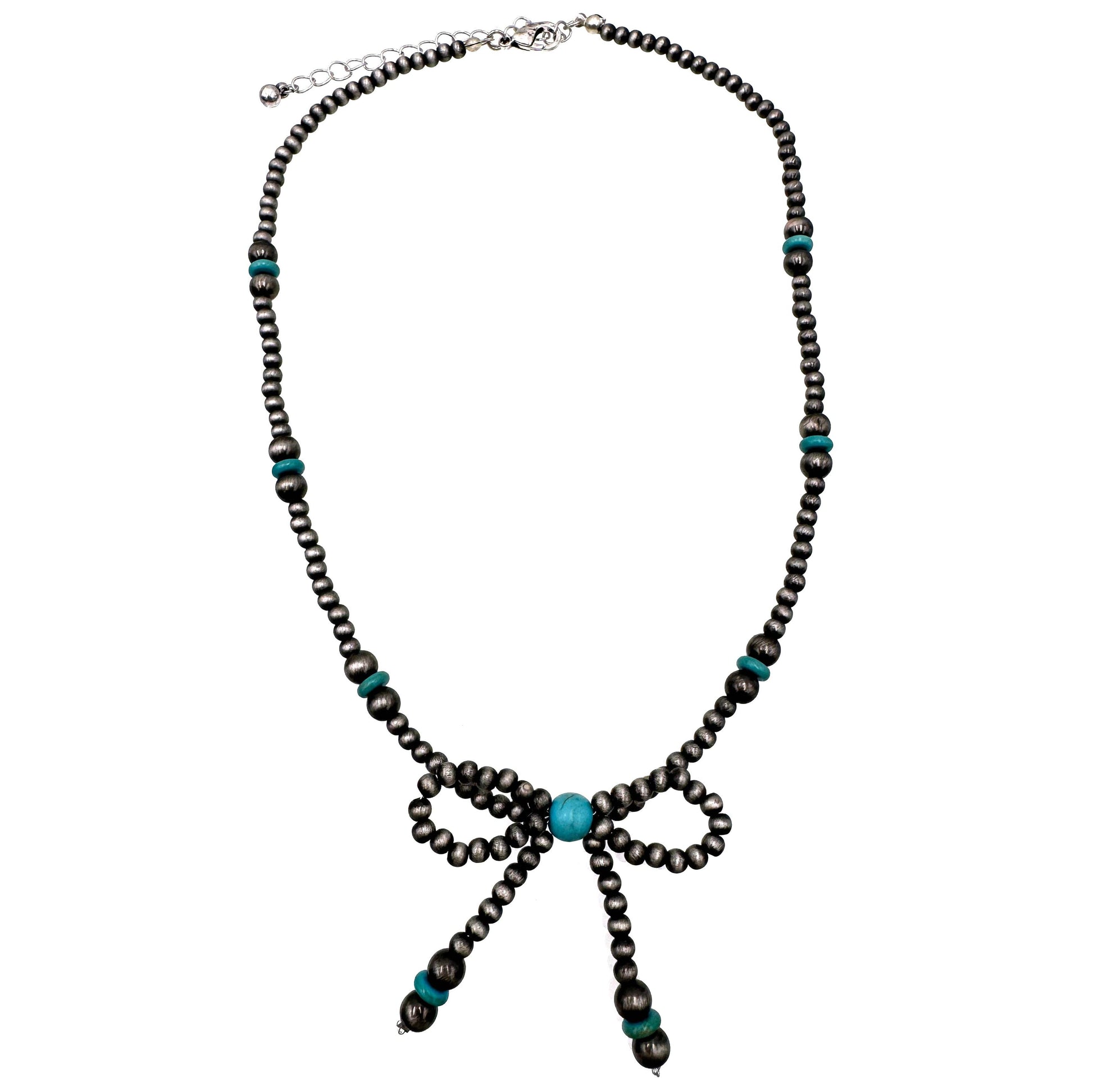 Experience the beauty of traditional Navajo craftsmanship with our Ribbon Style Turquoise Navajo Beads Necklace. The beads are intricately woven into a stunning ribbon design, creating a unique and eye-catching piece. Perfect for adding a touch of Southwestern charm to any outfit.